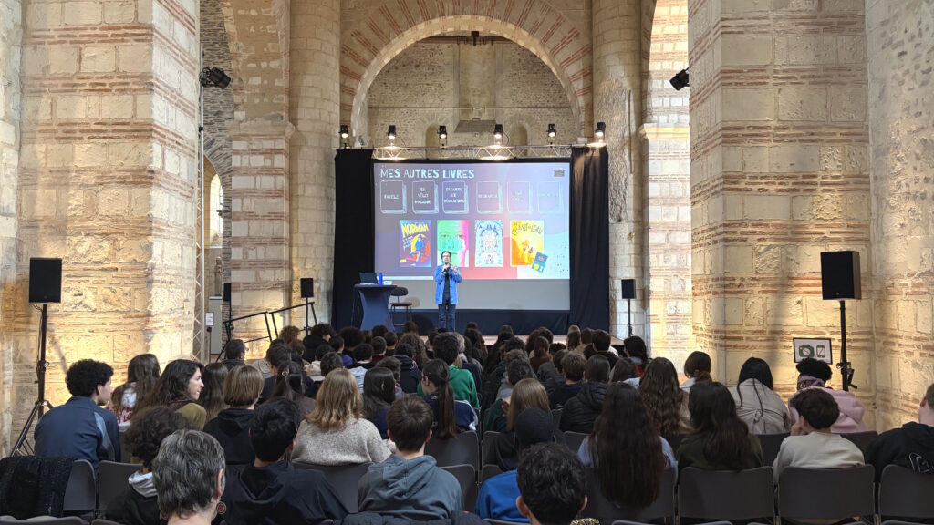 J’interviens aussi régulièrement auprès des élèves (collégiens et lycéens notamment) pour présenter mes romans mais aussi plus largement le travail d’auteur (brouillons, travail éditorial, galères en tous genres…).